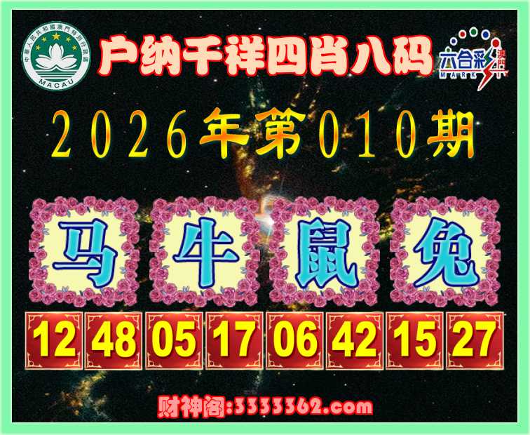 010期:《户纳千祥》 🏇四肖八码🏇【马牛鼠兔】开:00准
