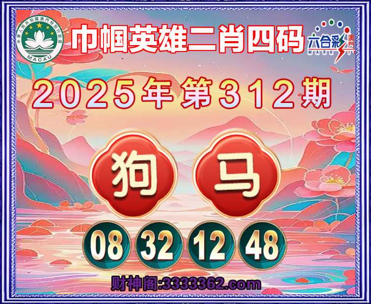 312期: 🍀『巾帼英雄』 🍀二肖四码🍀【狗马】【08.32.12.48】开:00准