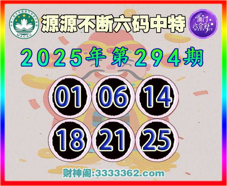 294期:【源源不断】 ☺️六码中特☺️【01.06.14.18.21.25】开:18