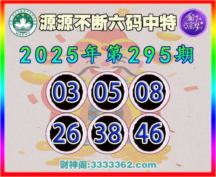 295期:【源源不断】 ☺️六码中特☺️【03.05.08.26.38.46】开:05