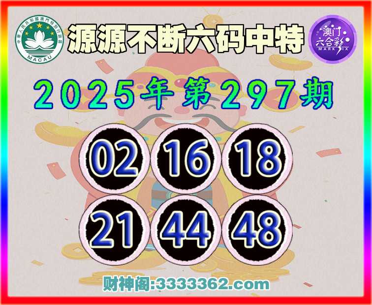 297期:【源源不断】 ☺️六码中特☺️【02.16.18.21.44.48】开:44
