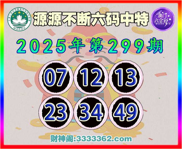 299期:【源源不断】 ☺️六码中特☺️【07.12.13.23.34.49】开:49