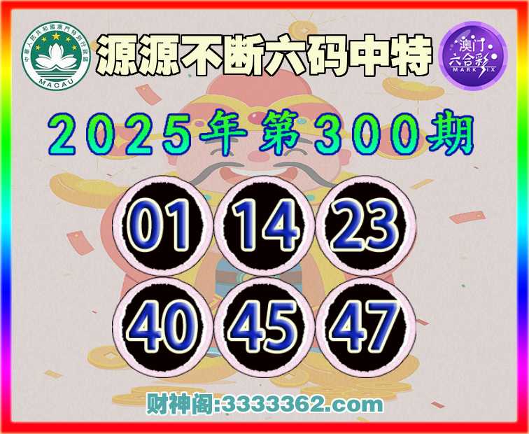 300期:【源源不断】 ☺️六码中特☺️【01.14.23.40.45.47】开:40
