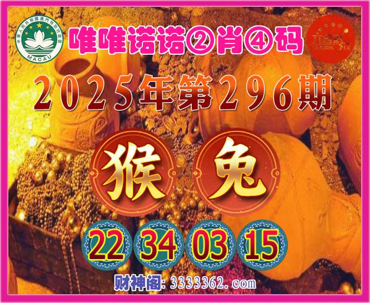296期:【唯唯诺诺】 🀄②肖④码🀄【兔】【22.34.03.15】开:猴22