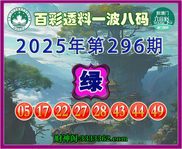 296期:【百彩透料】 ☘️一波八码☘️【绿波】开:猴22