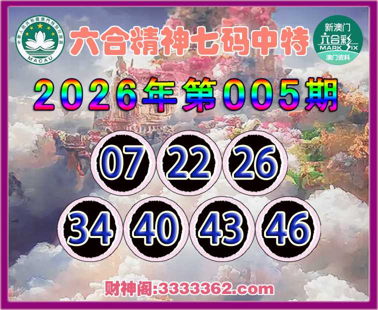 005期: 🥼『六合精神』 🥼七码中特🥼【07.22.26.34.40.43.46】开:43