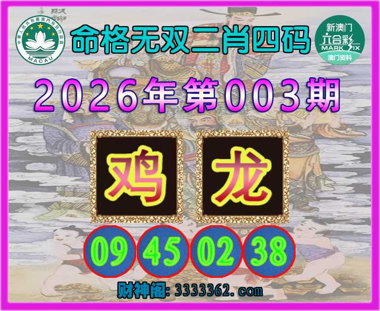 003期:《命格无双》 🎉二肖四码🎉【龙】【09.45.02.38】开:鸡09