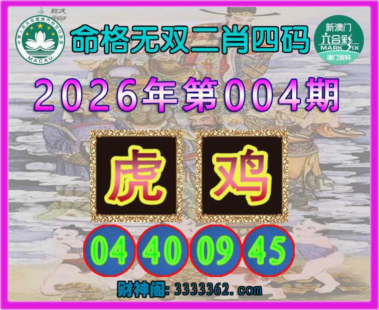 004期:《命格无双》 🎉二肖四码🎉【虎】【04.40.09.45】开:鸡45