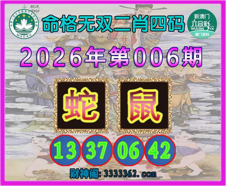 006期:《命格无双》 🎉二肖四码🎉【鼠】【13.37.06.42】开:蛇13