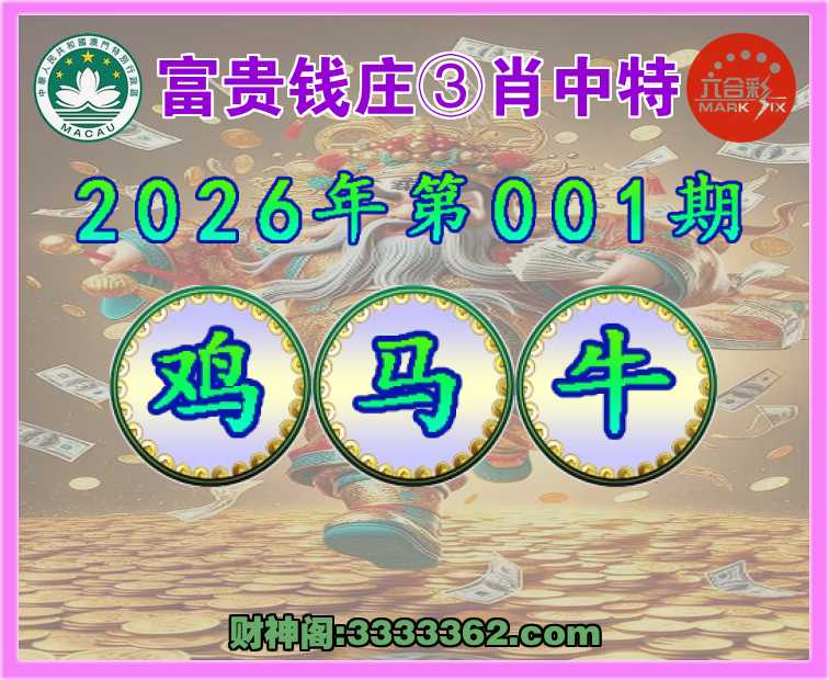 001期:《富贵钱庄》 ♥️③肖中特♥️【鸡.马.】开:牛29