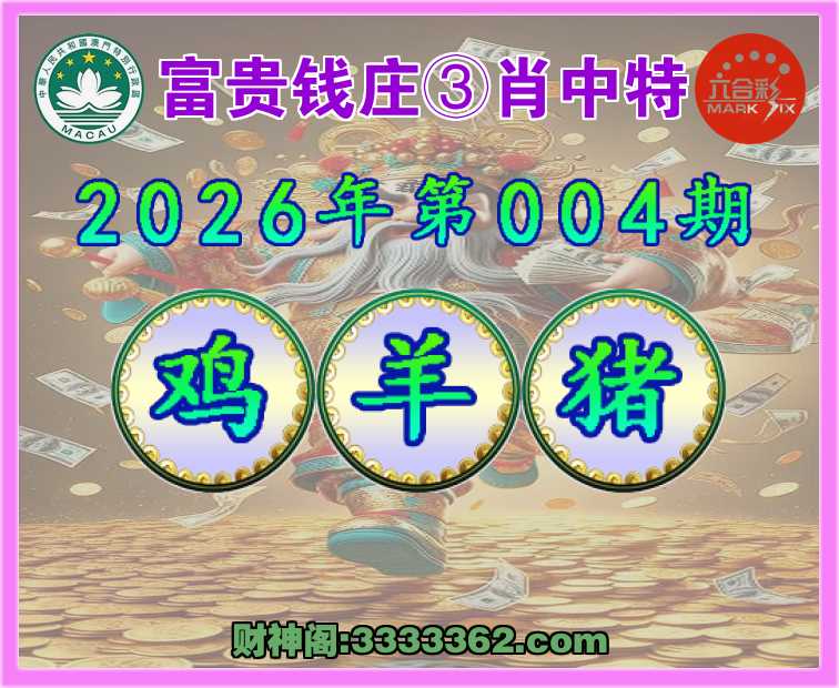 004期:《富贵钱庄》 ♥️③肖中特♥️【.羊.猪】开:鸡45