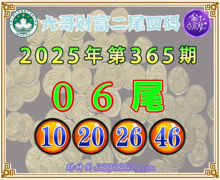 365期:『六哥财富』 🥧二尾四码🥧【06尾主:10.20.26.46】开:26
