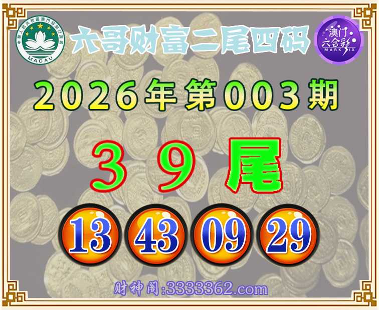 003期:『六哥财富』 🥧二尾四码🥧【39尾主:13.43.09.29】开:09