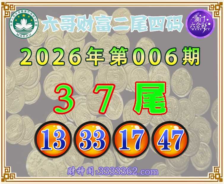 006期:『六哥财富』 🥧二尾四码🥧【37尾主:13.33.17.47】开:13