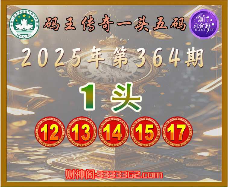 364期:〖码王传奇〗 🥖一头五码🥖【1头主:12.13.14.15.17】开:12