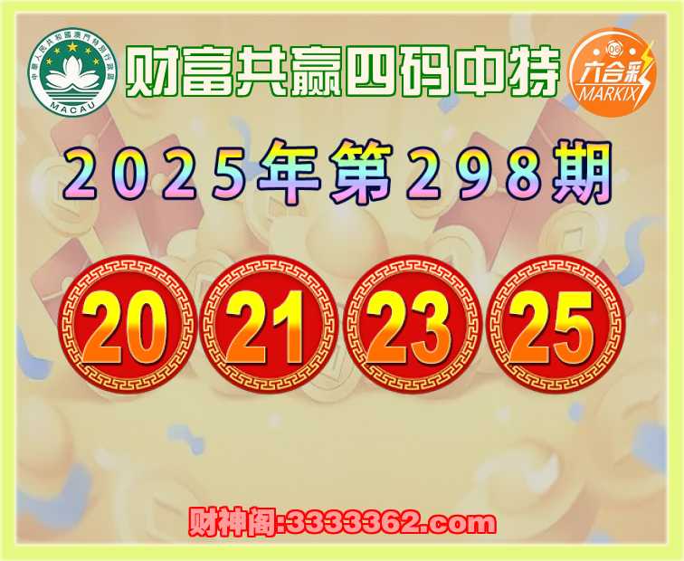 298期:《财富共赢》 🍏四码中特🍏【20.21.23.25】开:23