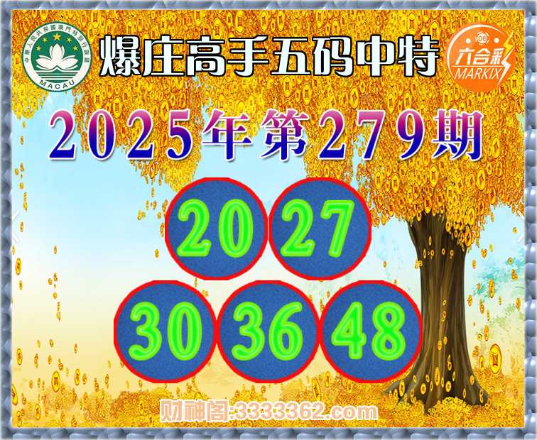 279期: 🍔『爆庄高手』 🍔五码中特🍔【20.27.30.36.48】开:27