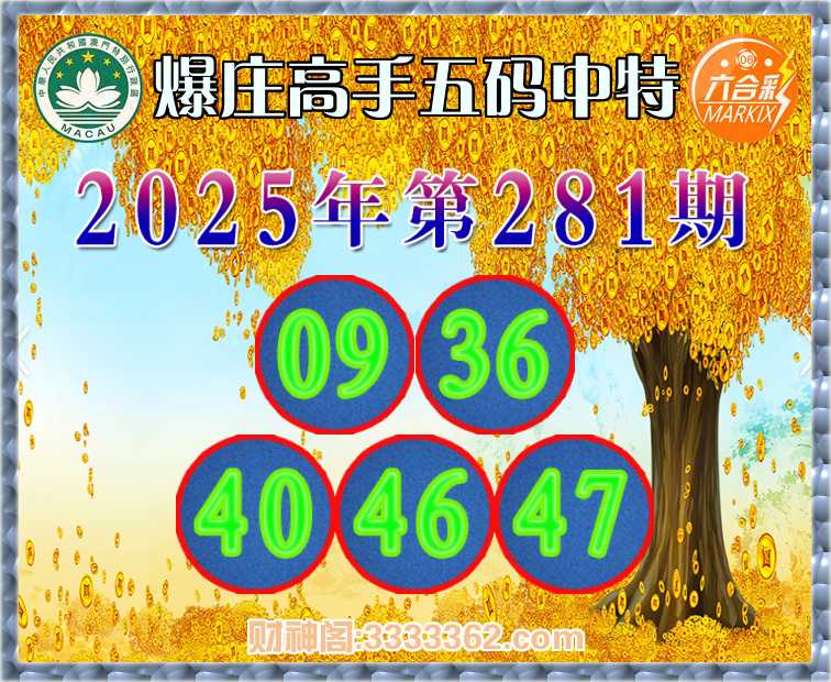 281期: 🍔『爆庄高手』 🍔五码中特🍔【09.36.40.46.47】开:47