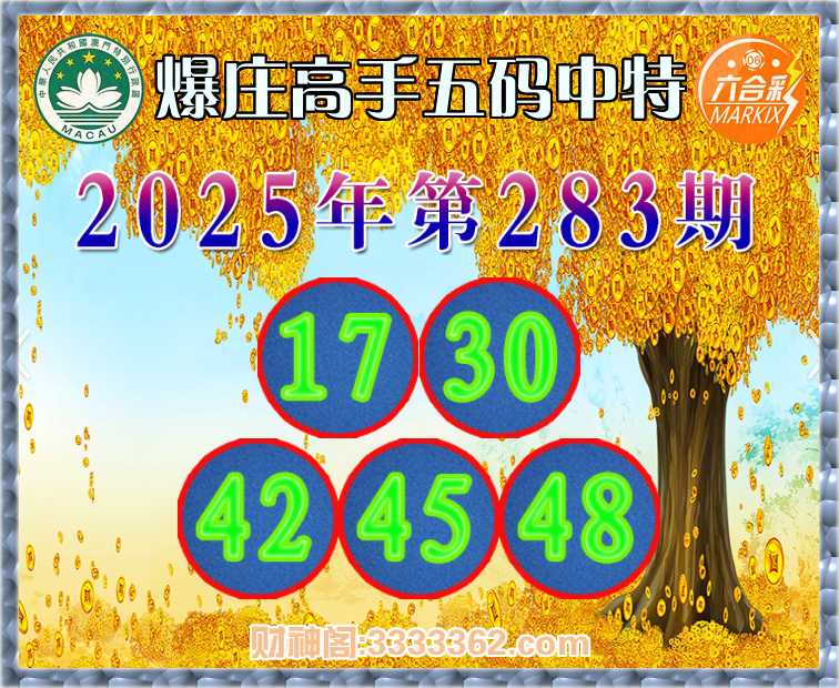 283期: 🍔『爆庄高手』 🍔五码中特🍔【17.30.42.45.48】开:45