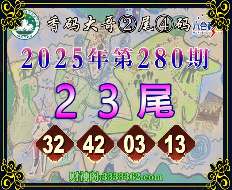 280期:【香码大哥】 ♣️②尾④码♣️【23尾主:32.42.03.13】开:42