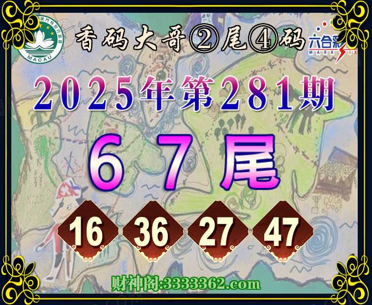 281期:【香码大哥】 ♣️②尾④码♣️【67尾主:16.36.27.47】开:47