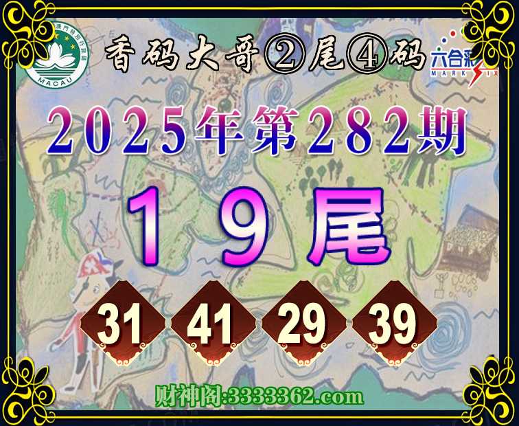 282期:【香码大哥】 ♣️②尾④码♣️【19尾主:31.41.29.39】开:41