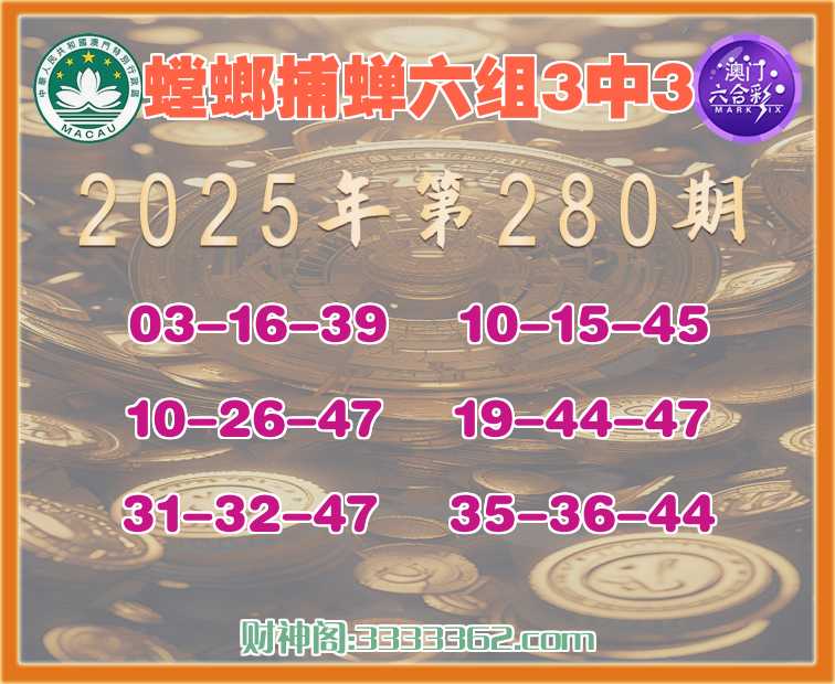 280期: 🍁『螳螂捕蝉』 🍁六组3中3🍁
