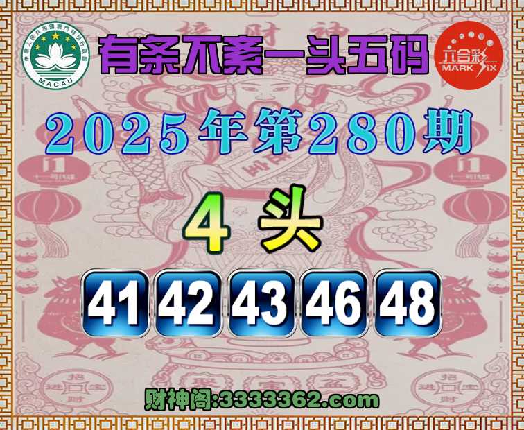 280期:『有条不紊』 🐓一头五码🐓【4头主:41.42.43.46.48】开:42准