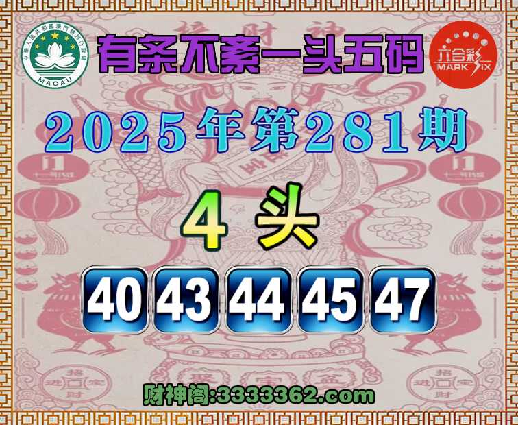 281期:『有条不紊』 🐓一头五码🐓【4头主:40.43.44.45.47】开:47准