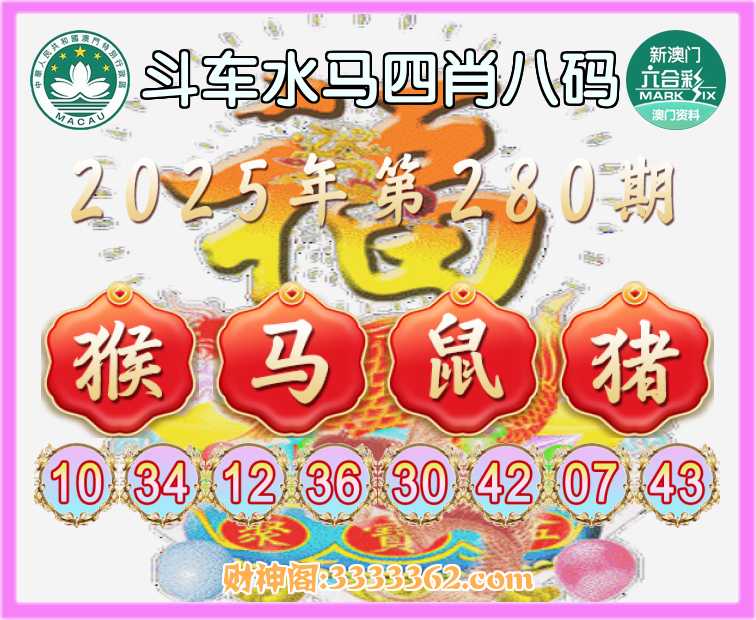 280期:【斗车水马】 🧏‍♀️四肖八码🧏‍♀️【猴马猪】开:鼠42