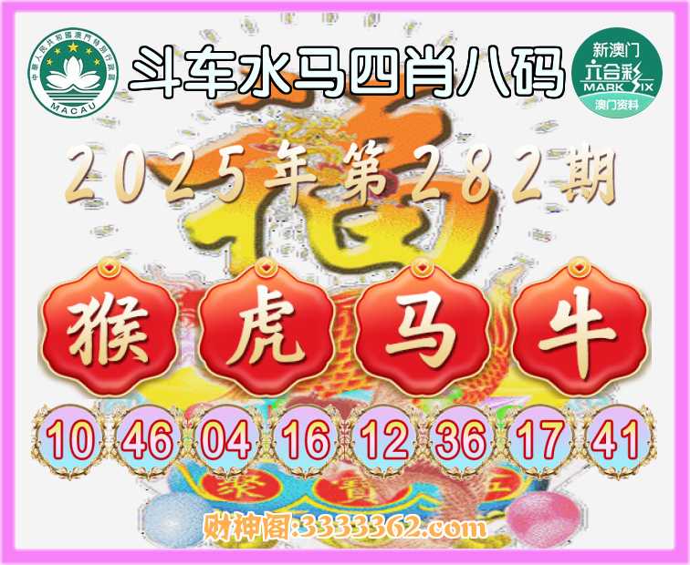 282期:【斗车水马】 🧏‍♀️四肖八码🧏‍♀️【猴虎马】开:牛41