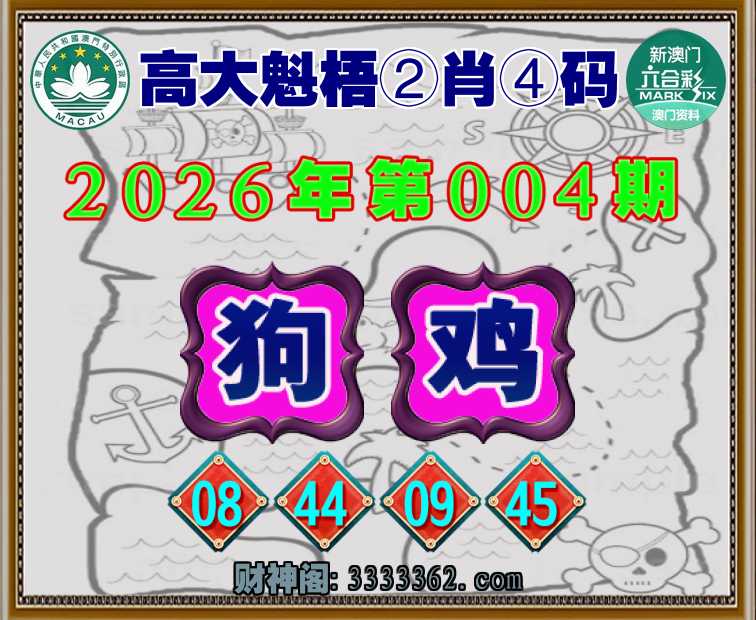004期: 🏆『高大魁梧』 🏆②肖④码🏆【狗】【08.44.09.45】开:鸡45