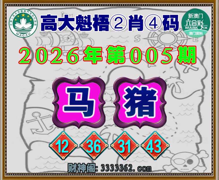 005期: 🏆『高大魁梧』 🏆②肖④码🏆【马】【12.36.31.43】开:猪43