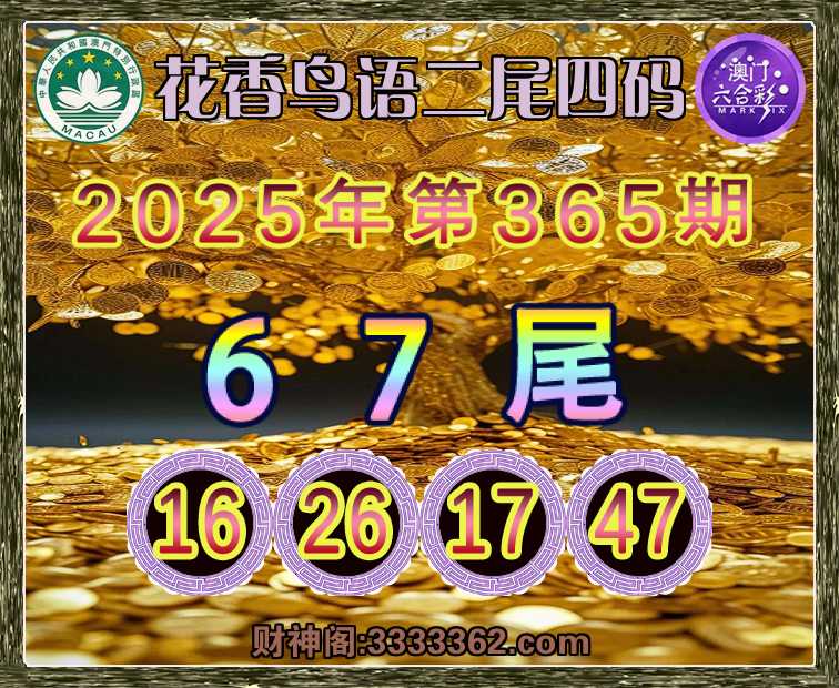 365期:《花香鸟语》 😍二尾四码😍【67尾主:16.26.17.47】开:26