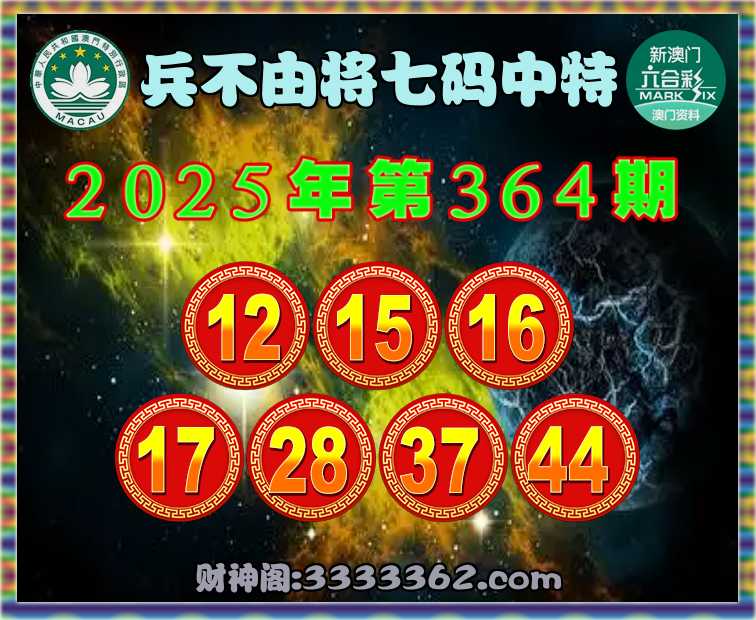 364期:〖兵不由将〗 ✂️七码中特✂️【12.15.16.17.28.37.44】开:12