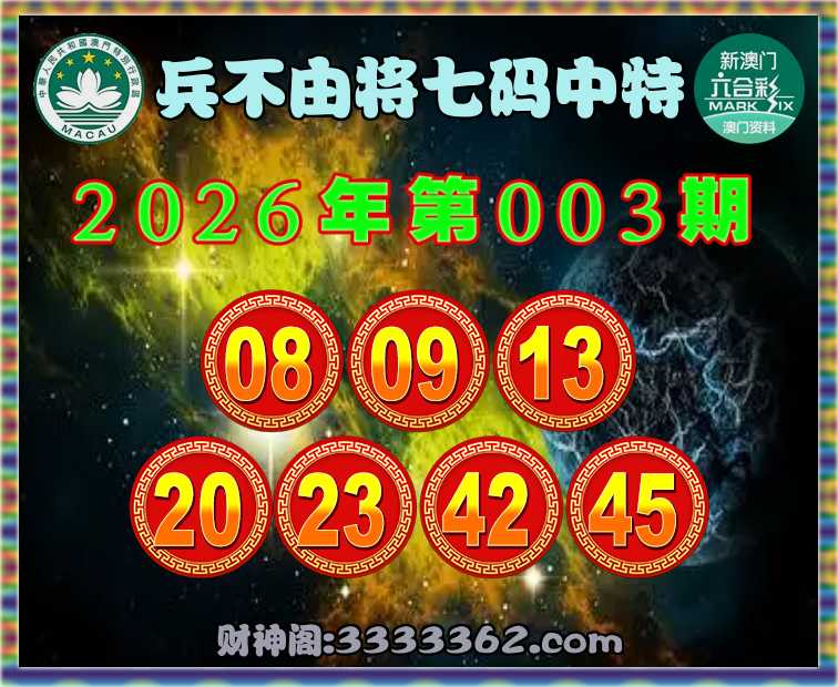 003期:〖兵不由将〗 ✂️七码中特✂️【08.09.13.20.23.42.45】开:09