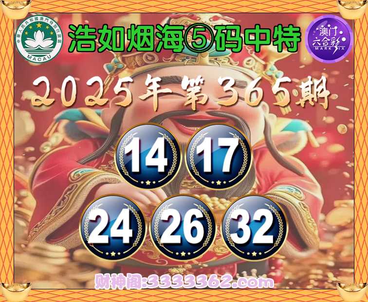 365期:【浩如烟海】 🥬⑤码中特🥬【14.17.24.26.32】开:26