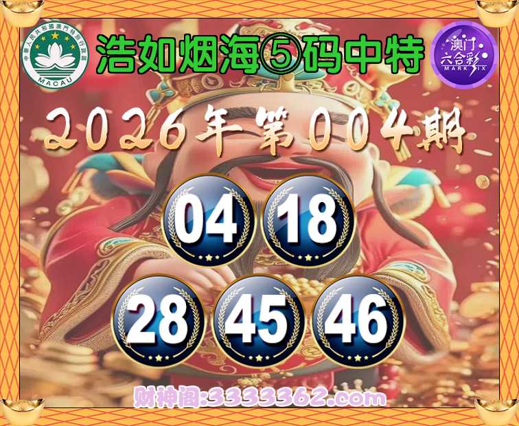 004期:【浩如烟海】 🥬⑤码中特🥬【04.18.28.45.46】开:45