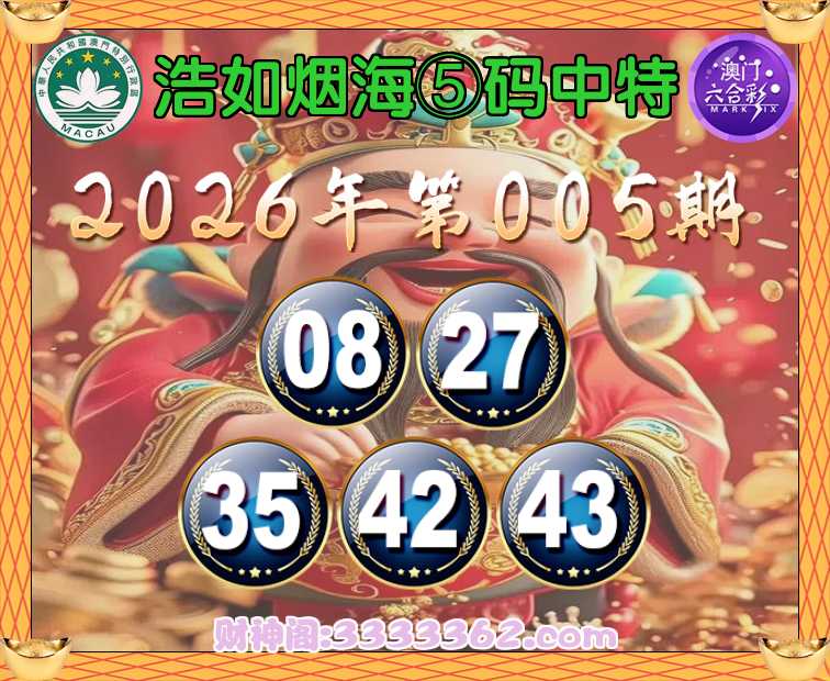 005期:【浩如烟海】 🥬⑤码中特🥬【08.27.35.42.43】开:43