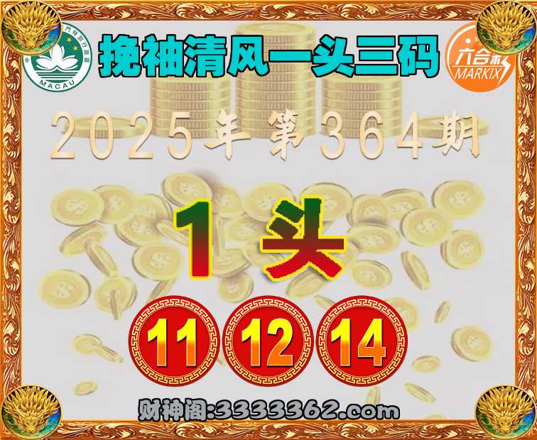 364期:【挽袖清风】 🥬一头三码🥬【1头主:11.12.14】开:马12