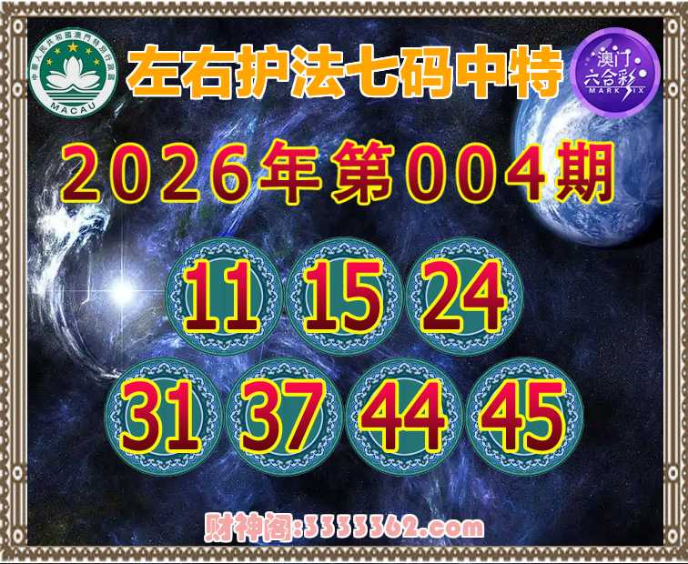004期:『左右护法』 ☘️七码中特☘️【11.15.24.31.37.44.45】开:45