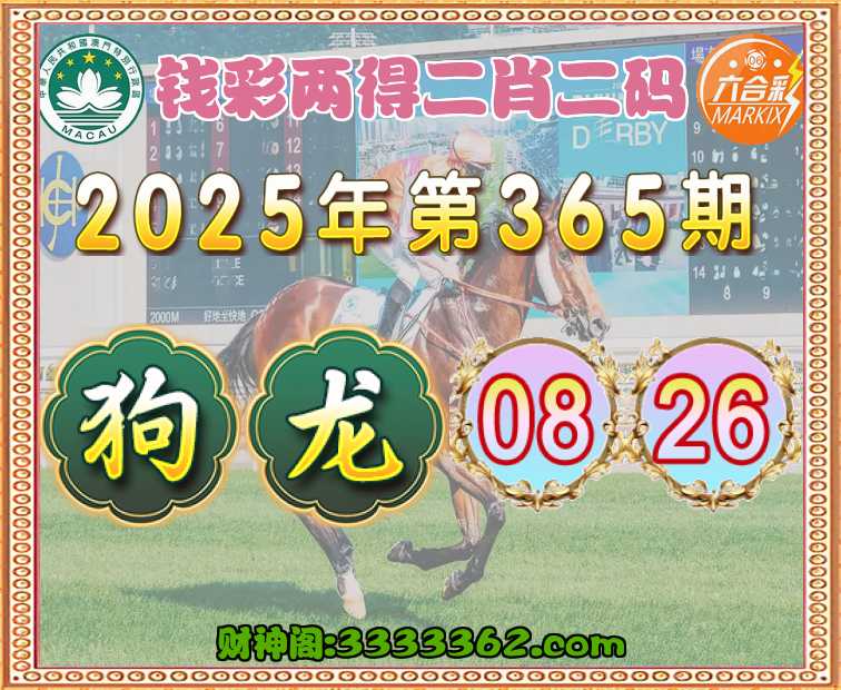 365期:『钱彩两得』 ♣️二肖二码♣️【狗】【08.26】开:龙26