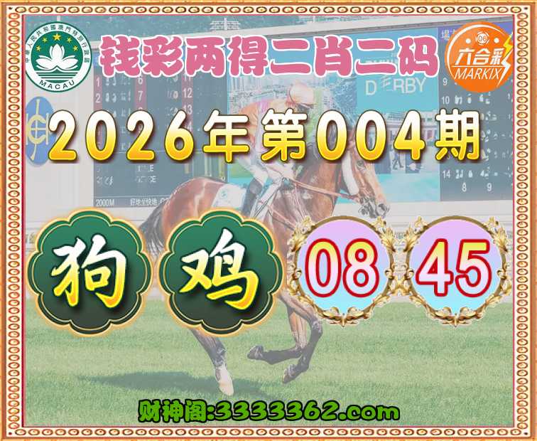 004期:『钱彩两得』 ♣️二肖二码♣️【狗】【08.45】开:鸡45