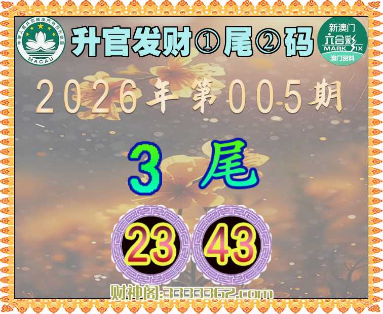 005期:『升官发财』 ✂️①尾②码✂️【3尾主:23.43】开:43
