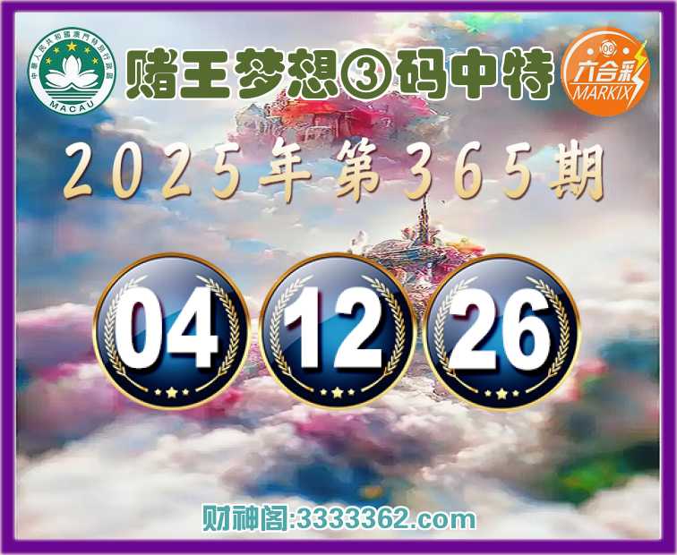 365期:『赌王梦想』 🌳③码中特🌳【04.12.26】开:26