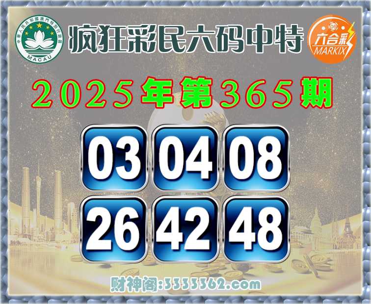 365期:『疯狂彩民』 🤩六码中特🤩【03.04.08.26.42.48】开:26