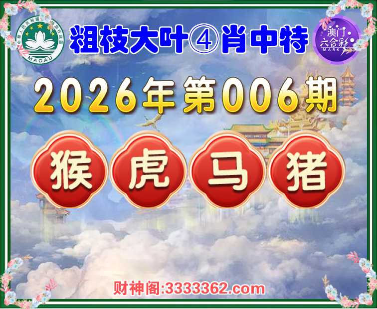 006期: 🧣《粗枝大叶》 🧣④肖中特🧣【猴.虎.马.猪】开:00准
