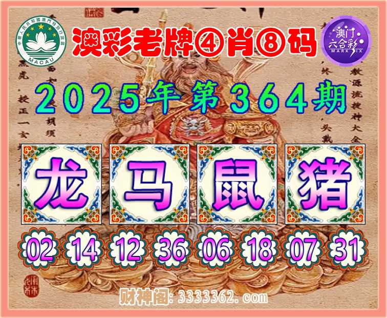 364期:『澳彩老牌』 🩴④肖⑧码🩴【龙鼠猪】开:马12