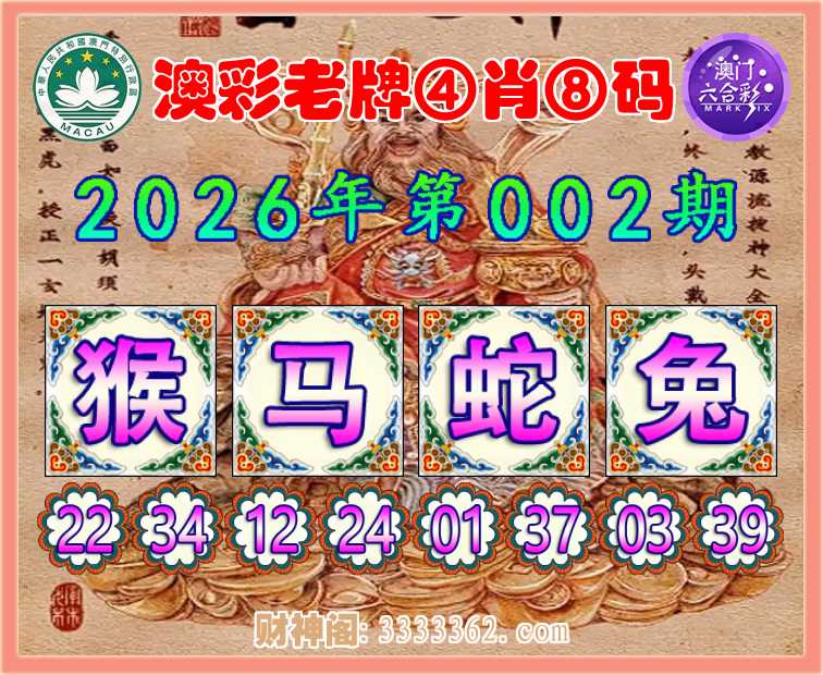 002期:『澳彩老牌』 🩴④肖⑧码🩴【马蛇兔】开:猴22