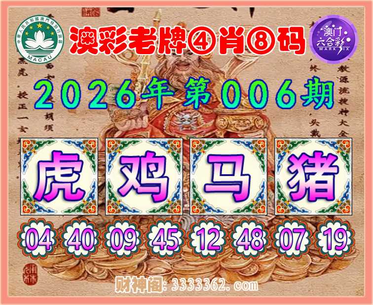 006期:『澳彩老牌』 🩴④肖⑧码🩴【虎鸡马猪】开:00准